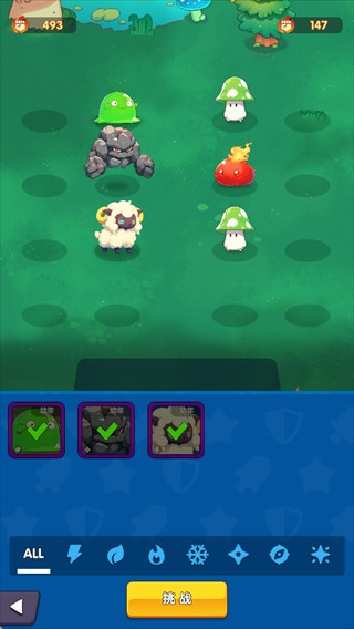 可选择已拥有的精灵组成小队,根据属性克制策略搭配,挑战不同敌人。