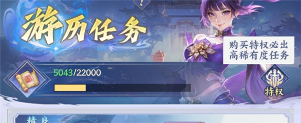 8、点击头像下的【VIP】-再点击【特权】,有两个可以使用【紫晶卡】购买的终身特权,让每天刷新的游历任务更好,早买早享受!