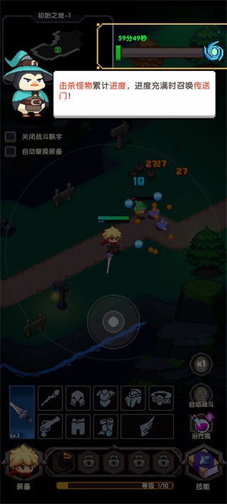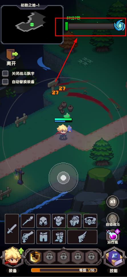 开启 “自动战斗” 可解放双手,高效清怪刷宝;血量告急时,及时使用 “治疗瓶” 恢复生命,避免不必要的死亡。同时,留意场景内的进度条,击杀怪物填充进度,触发传送门推进关卡。